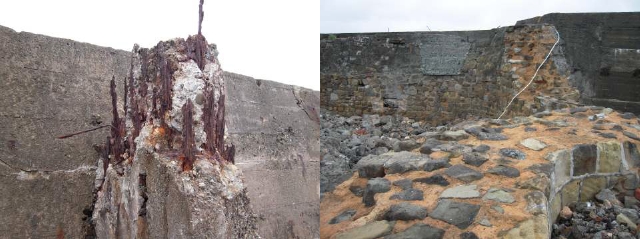 外壁は珍しい石積み工法なので頑丈らしい。おかげで30年無人で放置されてたのにまだ島の形を保っています。とはいえ補修もしてるみたい。