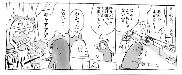 本のページ数が多かったのですごいいっぱい搬入したみたいに見えて、一瞬マジで血の気が引いた。