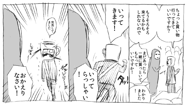 15:00 たけださんがお買い物に出かける間にスケブを描く。