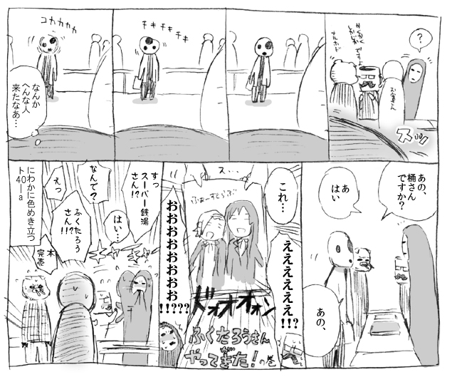 ポストカードもらってサインをねだり、たけださんにもサインをねだり、是非長いまんがを描いてくださいと強いたりしました。