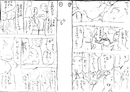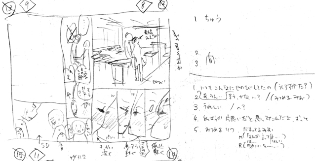ネームはたいていそのへんにある紙に書いてて、このときはB5の紙2枚。すごい見にくいなこれ…。
