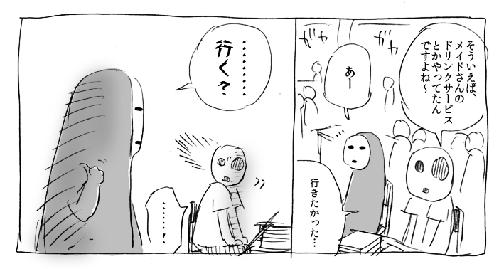 閉会間際だわ混んでるわで、やたらテンションの高いメイドさんに当たる。