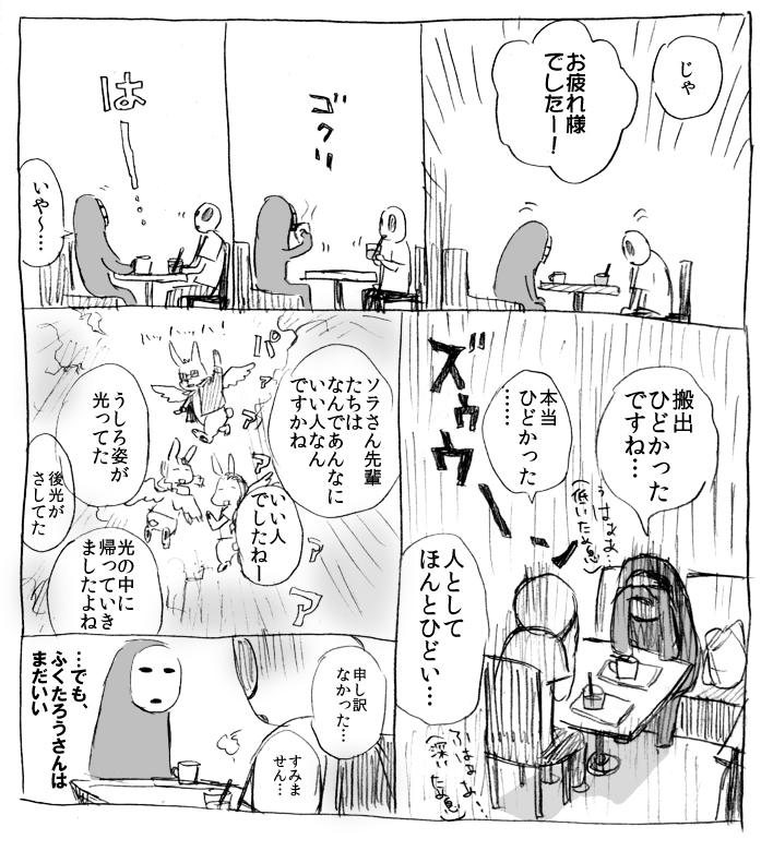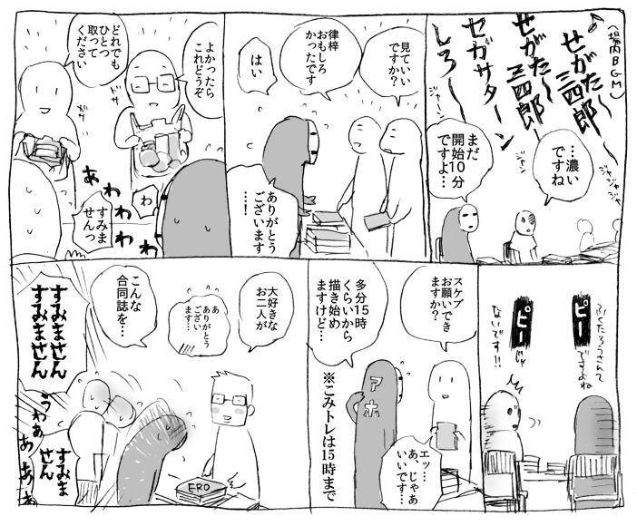 ふくたろうさんと合同誌の反省をしたり、お前のほうがEROい、いやお前のほうがEROいみたいなどうでもいい話をする。