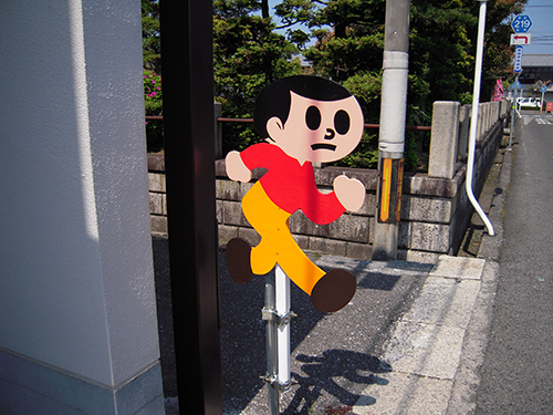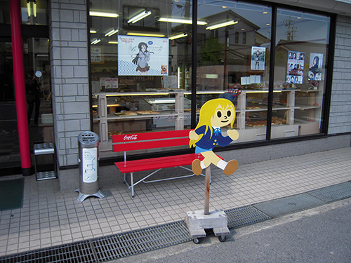 パン屋さんの前でとびだすムギ。校門の前の通りにもいたはずなのにこっちにも。