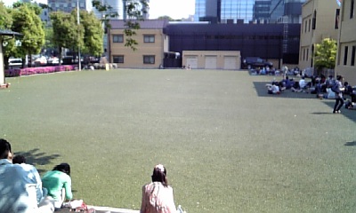 >入場する時、校舎内から外を見たら、芝生の木陰で律&澪のコスプレさん二人が仲良くお弁当を食べてました。