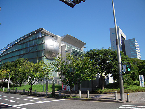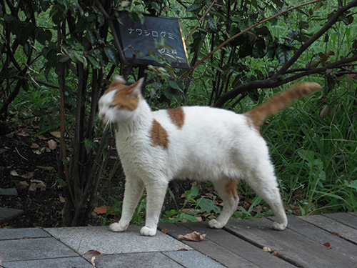 科学未来館の外で野良猫がナワシログミのポーズ シャキィイイイインンッ