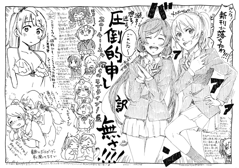 現地でヒィヒイ言いながらコピーしたペーパー。新刊を落としてしまいペーパーはちゃんとしようと思ったはずが、ティアでお知り合いの作家さんが皆ラブライブを見ていたのでいきなり描いてくださいと突撃してその場で描かせたというおそろしいペーパー。おそろしいけど個人的には豪華過ぎるオールスターキャストでものすごくうれしいです。みなさんありがとうございました。そしてすみませんでした。