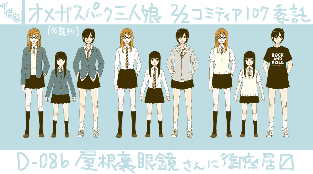 それから三人娘の既刊2冊とPC擬人化コピー本(しょうもない)を立ち読みできるように置いておきますので、お目当てのお買い物が済んで暇でしょうがないときにでもお立ち寄りください。