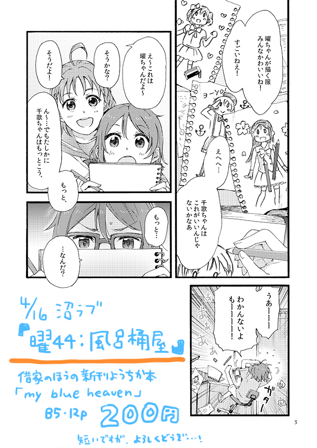 B5/12p/200円 曜ちゃんが青ジャン衣装を考える短いお話です。
