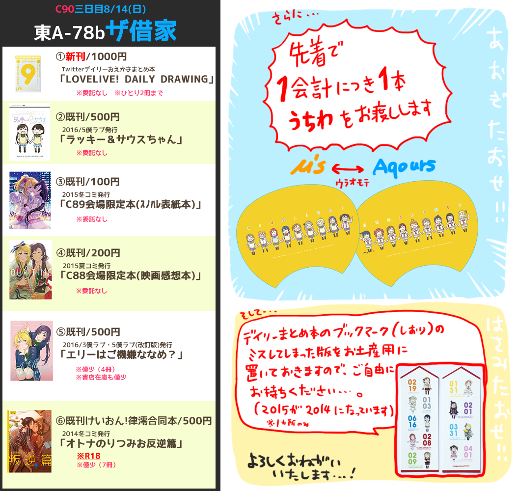 「LOVELIVE! DAILY DRAWING」A6/90p/1000円 サンプル(Pixiv)